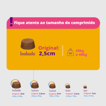 - Administração Fácil: comprimido oral indicado para cães de 20 kg a 40 kg;