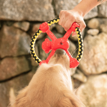 Entre os destaques do produto está a corda reforçada, que permite brincadeiras de cabo de guerra e auxilia na limpeza mecânica dos dentes durante a mastigação. Esse formato permite que o cão explore diferentes formas de brincar, tornando o objeto mais interessante e prolongando o tempo de uso.