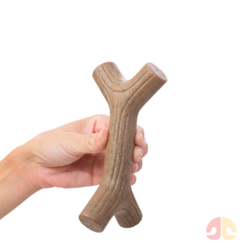 Proposta do produto: mordedor em formato de galho para estimular o instinto natural de roer.
