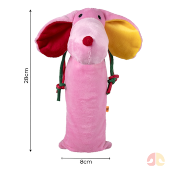 O formato inspirado em garrafa feita com materiais de pelúcia confortável e tecido resistente ajuda a manter o interesse do animal por mais tempo. A textura agradável ao toque convida o cão a brincar tanto sozinho quanto em momentos compartilhados com você. A construção em tecido 100% poliéster garante conforto durante o uso e resistência para atividades leves de mastigação e perseguição. Esse brinquedo também pode ajudar a aliviar estresse e tédio, pois estimula a atividade física e mental do seu pet. Brincar regularmente é importante para manter a saúde emocional e física dos cães e pode fortalecer o vínculo entre tutor e animal.