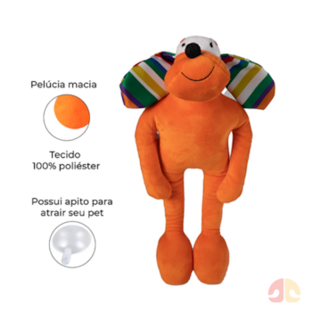 Esse brinquedo tem pernas mais longas que facilitam as brincadeiras de puxar, balançar e sacudir, deixando o cão entretido por mais tempo. Ele tem um apito interno que produz som quando o animal morde ou aperta, o que ajuda a manter a atenção do pet concentrada no brinquedo e reforça a estimulação durante a brincadeira.