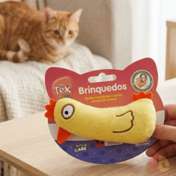 O formato de frango com detalhes que remetem a presas naturais chama a atenção imediatamente. Em paralelo, a leveza do material facilita movimentos como agarrar, morder e carregar. Isso cria uma experiência mais próxima do comportamento instintivo, incentivando o gato a se movimentar com mais frequência.