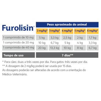 Diurético Furolisin 20mg Vetnil para Cachorros e Gatos com 10 comprimidos