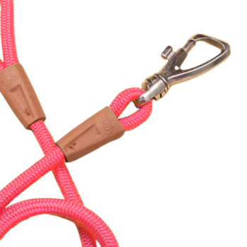 Uma característica destacada da guia é o mosquetão exclusivo, que oferece maior segurança e praticidade. Sem a necessidade de rosquear, o encaixe é resistente e confiável. Além disso, a base giratória permite movimentos livres, proporcionando maior conforto tanto para o cão quanto para o dono durante o passeio.