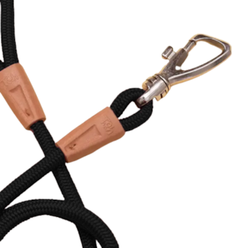 Uma característica destacada da guia é o mosquetão exclusivo, que oferece maior segurança e praticidade. Sem a necessidade de rosquear, o encaixe é resistente e confiável. Além disso, a base giratória permite movimentos livres, proporcionando maior conforto tanto para o cão quanto para o dono durante o passeio.