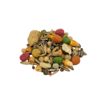 Grão de Milho*, Grão de Sorgo, Frutas Cristalizadas, Arroz Integral, Aveia, Grão de Soja**, Aroma de Frutas Vermelhas, Ervilha, Semente de Girassol, Grão de Amendoim, Amendoim com Casca, PARTÍCULAS EXTRUSADAS FORTE (Farelo de Soja, Quirera de Milho Fina, Fubá de Milho, Quirera de Arroz, Farinha de Trigo, Açúcar, Óleo de soja Refinado, Fosfato Bicálcico, Linhaça Integral Moída, Levedura Seca de Cervejaria, Ácido Fólico, Colina, Cobre, Ferro, Iodo, Manganês, Selênio, Vitaminas (A, B1, B12, B2, B6, D3, E, K3, C), Zinco, Niacina, Ácido Pantotênico, Biotina, Cobalto, Magnésio, Corantes (Amarela Tartrazina, Amarelo Crepúsculo, Azul Brilhante e Vermelho Ponceau), Aditivo Flavorizante, Aditivo Antioxidante (BHA, BHT, Etoxiquim, Galato de Propila, Carbonato de Cálcio), Aditivo Antifúngivo Fungistático, Aditivo Adsorvente (Gluconos Saccharomyces Cerevisiae).