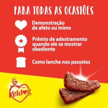 Seja durante um passeio, como lanche especial, como demonstração de afeto ou como prêmio durante o adestramento, o Bifinho Keldog Churrasco se destaca pela sua versatilidade. É o complemento perfeito para enriquecer a relação entre você e seu cão, proporcionando momentos de alegria e recompensa.