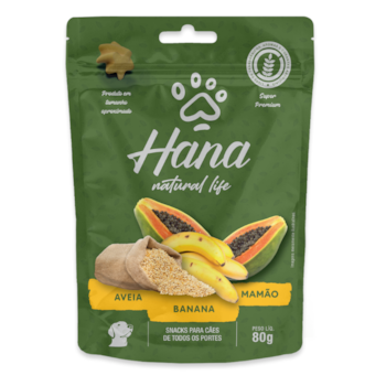 Petisco Hana Natural Life Snack para Cães Adultos 80gr Sabor Aveia, Banana e Mamão
