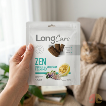O Petisco LongCare Funcional Zen para Cães Adultos 250g Sabor Maracujá, Valeriana e Camomila foi desenvolvido para tutores que desejam oferecer mais do que um simples agrado. Indicado para cães adultos de porte mini, pequeno, médio, grande e gigante, ele combina proposta funcional e terapêutica com padrão super premium. Além disso, apresenta sódio reduzido e não contém corante nem antioxidante artificial, reforçando sua proposta de cuidado consciente.