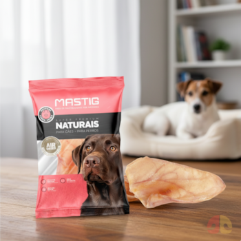 Esse produto é produzido no Brasil com orelha suína de qualidade, sem adição de conservantes ou aditivos químicos, mantendo a composição simples e natural. Ele não substitui uma alimentação completa, mas se torna uma excelente alternativa de petisco entre as refeições ou recompensa durante o treinamento.