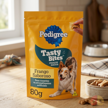 O Petisco Pedigree Tasty Bites Cães Adulto 80g Sabor Frango Saboroso foi desenvolvido para tornar esses momentos ainda mais especiais. A combinação de sabor atrativo, textura macia e valor calórico controlado permite que o produto seja utilizado em diferentes situações do cotidiano.