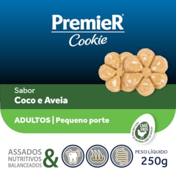 Petisco PremieR Cookie cachorros adultos raças pequenas coco e aveia 250gr