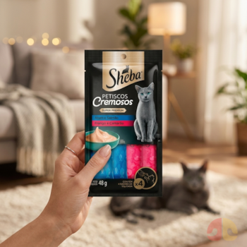 O Petisco Sheba Cremoso Atum, Salmão, Frango e Camarão para Gatos Adultos com 4 Unidades transforma o simples ato de recompensar em um ritual de proximidade. Enquanto o gato aprecia o creme suave e aromático, o tutor fortalece o vínculo com segurança e qualidade.