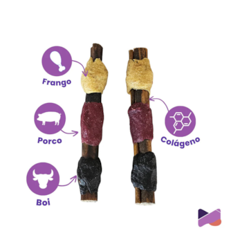 O Petisco Snack Umami Kebab Stick para Cães é uma escolha nutritiva e saborosa para tutores que desejam oferecer mais qualidade à rotina alimentar dos seus pets. Desenvolvido com carnes selecionadas de frango, porco e boi, o snack traz um perfil de sabor irresistível, capaz de agradar até os cães mais exigentes. Além disso, sua fórmula contém colágeno, um ingrediente funcional que auxilia na manutenção da saúde das articulações e da musculatura.