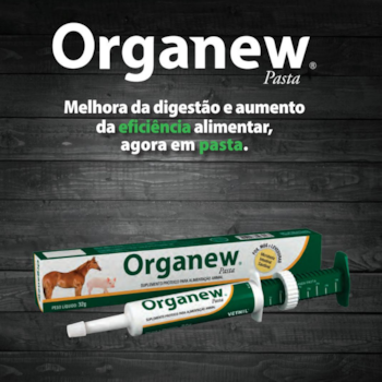 O Probiótico Organew Pasta para Equinos e Suinos é composto por vitaminas, aminoácidos e elementos pró e prebióticos para auxiliar no desenvolvimento e manutenção de uma microbiota intestinal saudável, contribuindo para uma melhor digestibilidade dos nutrientes da dieta e aumento da eficiência alimentar.