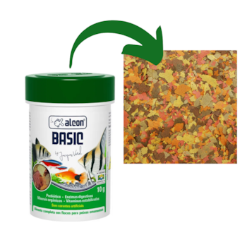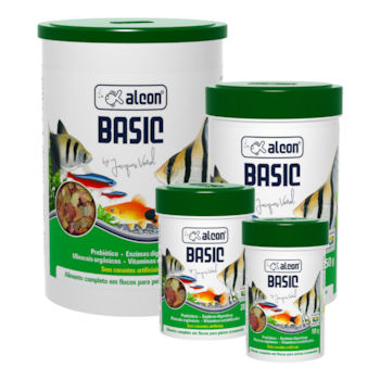 Alimento floculado para todas as espécies de peixes. Alcon Basic é um alimento completo em flocos para peixes ornamentais que combina uma grande variedade de ingredientes naturais selecionados. Possui em sua composição, minerais orgânicos quelatados, que representam maior biodisponibilidade de minerais ao organismo dos peixes. Enzimas Digestivas e Prebiótico favorecem o desenvolvimento da flora intestinal benéfica, melhorando o aproveitamento dos nutrientes. Não contém corantes artificiais. Forma de uso Fornecer quantidade a ser totalmente consumida em até 5 minutos, de duas a quatro vezes por dia.