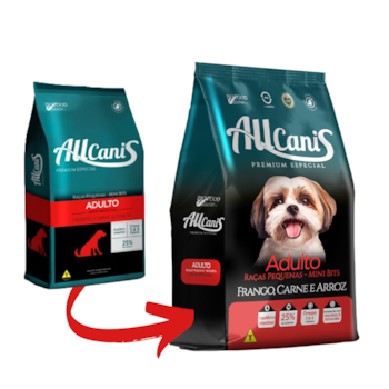 Ração Allcanis para Cães Adultos Raças Pequenas Mini Bits Sabor Frango, Carne e Arroz 15 kg