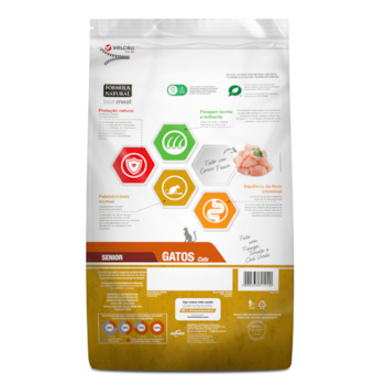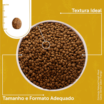 Desenvolvida por médicos veterinários, a linha Fórmula Natural Fresh Meat utiliza os conceitos mais avançados da nutrição de cães e gatos. Naturalmente saborosa e nutritiva, possui como grande diferencial a utilização de carne fresca e fontes especiais de carboidratos, fibras, vitaminas e minerais, como as frutas e vegetais. É uma linha completa que oferece versões com cuidados específicos para diferentes necessidades e estágios de vida. Fórmula Natural Fresh Meat Gatos Sênior oferece a manutenção da massa magra para gatos adultos a partir dos 7 anos de idade.