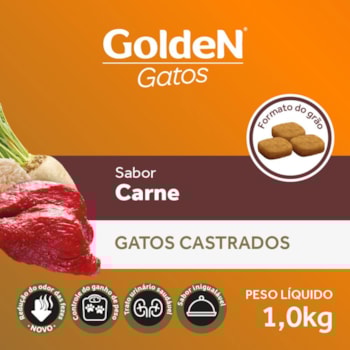 Ração GoldeN gatos adultos castrados carne 1,0kg
