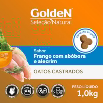 Ração GoldeN Seleção Natural Gatos Castrados Frango, Abóbora e Alecrim 1kg
