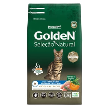 Ração GoldeN Seleção Natural Gatos Castrados Frango, Abóbora e Alecrim 3,0kg