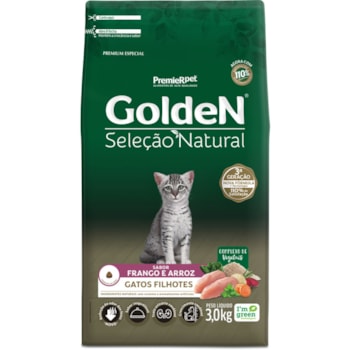 Ração GoldeN Seleção Natural Gatos Filhotes Sabor Frango e Arroz 3,0kg