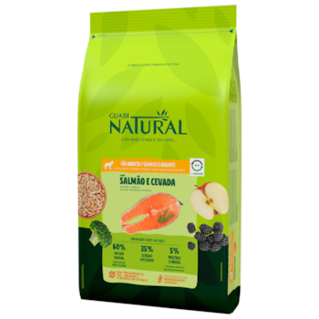 A escolha dos ingredientes presentes na Ração Guabi Natural é minuciosa e pensada para oferecer o máximo de benefícios ao seu cão. O salmão é uma excelente fonte de proteína de alta digestibilidade, ideal para cães que precisam manter a massa muscular, enquanto a cevada oferece fibras que ajudam no funcionamento adequado do sistema digestivo, além de fornecer energia de forma sustentável. A combinação de ambos os ingredientes resulta em uma alimentação balanceada, que garante que o seu pet receba todos os nutrientes necessários para sua saúde e vitalidade. A fórmula inclui também uma gama completa de vitaminas e minerais, como Vitamina C, Zinco, Selênio e Ferro, que contribuem para a saúde geral do cão, desde o fortalecimento ósseo até o suporte imunológico.
