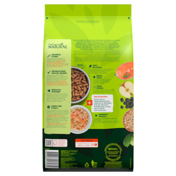 Seleção de Ingredientes de Origem Animal, mín. 60% (dos quais mín. 16% são Carnes Selecionadas: Carne Mecanicamente Separada de Salmão, Carne Mecanicamente Separada de Frango e Fígado de Frango; Farinha de Vísceras de Aves, Farinha de Torresmo, Ovo em Pó, Óleo de Vísceras de Aves, Gordura Suína, Óleo de Peixe Refinado, Hidrolisado de Fígado Ave e Suíno). Seleção de Cereais Integrais, mín. 35% (Arroz Integral, Grão de Aveia, Cevada em Grão, Grão de Sorgo). Seleção de Vegetais, Frutas, Vitaminas, Minerais e Ingredientes Funcionais, máx. 5% (dos quais máx. 3% são Vegetais e Frutas Selecionados: Ervilha, Brócolis Desidratado, Espinafre Desidratado, Cenoura Desidratada, Mirtilo Desidratado “Blueberry”, Amora Desidratada, Maçã Desidratada, Manga Desidratada, Polpa de Beterraba, Farinha da Alga Schizochytrium sp., Semente de Psyllium, Levedura Seca de Cervejaria, Óleo de Linhaça; Cloreto de Potássio, Carbonato de Cálcio, Sulfato de Condroitina, Sulfato de Glicosamina, Parede Celular de Levedura Fonte de Beta- Glucanos, L-Lisina, Taurina, DL-Metionina, Propionato de Cálcio, Sorbato de Potássio, Aditivos Prebióticos: Inulina e Parede Celular de Levedura Fonte de Mananoligossacarídeos; Antioxidantes Naturais: Extrato de Alecrim e Concentrado de Tocoferóis; Aditivo Adsorvente: Parede Celular de Levedura e Bentonita; Vitaminas: A, D3, E, K3, C, B1, B2, B6, B12, Pantotenato de Cálcio, Ácido Fólico, Ácido Nicotínico, Biotina, Cloreto de Colina; Minerais: Sulfato de Zinco, Sulfato de Ferro, Sulfato de Manganês, Iodato de Cálcio; Minerais Quelatados: Proteinato de Manganês, Levedura Enriquecida com Selênio, Proteinato de Zinco, Proteinato de Cobre).