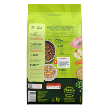 Seleção de Ingredientes de Origem Animal, mín. 65% (dos quais mín. 16% são Carnes Selecionadas: Carne Mecanicamente Separada de Frango e Fígado de Frango; Farinha de Vísceras de Aves, Farinha de Torresmo, Ovo em Pó, Óleo de Vísceras de Aves, Gordura Suína, Óleo de Peixe Refinado, Hidrolisado de Fígado Ave e Suíno). Seleção de Cereais Integrais, mín. 30% (Arroz Integral, Grão de Aveia, Cevada em Grão, Grão de Sorgo). Seleção de Vegetais, Frutas, Vitaminas, Minerais e Ingredientes Funcionais, máx. 5% (dos quais máx. 3% são Vegetais e Frutas Selecionados: Ervilha, Brócolis Desidratado, Espinafre Desidratado, Cenoura Desidratada, Mirtilo Desidratado “Blueberry”, Amora Desidratada, Maçã Desidratada, Manga Desidratada, Polpa de Beterraba, Farinha da Alga Schizochytrium sp., Semente de Psyllium, Levedura Seca de Cervejaria, Óleo de Linhaça; Cloreto de Potássio, Carbonato de Cálcio, Sulfato de Condroitina, Sulfato de Glicosamina, Parede Celular de Levedura Fonte de Beta-Glucanos, Extrato de Yucca mín 0,05%, L-Lisina, DL-Metionina, Propionato de Cálcio, Sorbato de Potássio, Aditivos Prebióticos: Inulina e Parede Celular de Levedura Fonte de Mananoligossacarídeos; Antioxidantes Naturais: Extrato de Alecrim e Concentrado de Tocoferóis; Aditivo Adsorvente: Parede Celular de Levedura e Bentonita; Vitaminas: A, D3, E, K3, C, B1, B2, B6, B12, Pantotenato de Cálcio, Ácido Fólico, Ácido Nicotínico, Biotina, Cloreto de Colina; Minerais: Sulfato de Zinco, Sulfato de Ferro, Sulfato de Manganês, Iodato de Cálcio; Minerais Quelatados: Proteinato de Manganês, Levedura Enriquecida com Selênio, Proteinato de Zinco, Proteinato de Cobre).