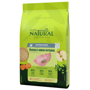 Indicada para gatos sênior castrados: A Ração Guabi Natural é formulada especialmente para atender às necessidades nutricionais de gatos mais velhos que passaram pela castração, promovendo um envelhecimento saudável.