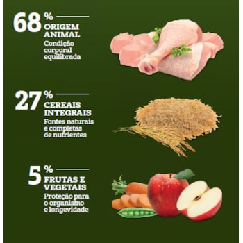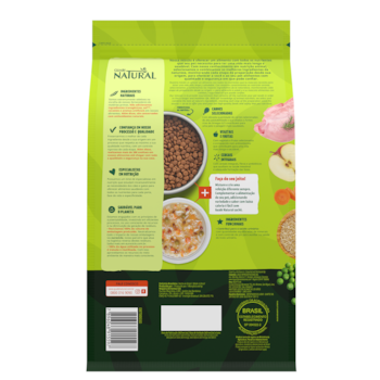 Ingredientes Naturais: Sem transgênicos ou corantes artificiais, a ração é feita com ingredientes naturais de alta qualidade, como frango e arroz integral.