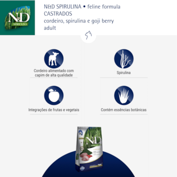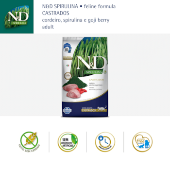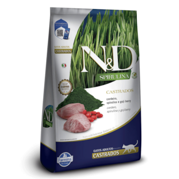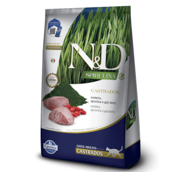 Ração N&D Spirulina, Cordeiro e Goji Berry 7kg Gatos Adultos Castrados
