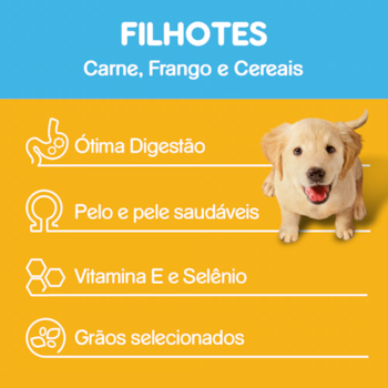 - Grão adaptado: tamanho específico para filhotes de raças médias e grandes, facilitando a mastigação.
