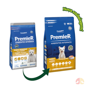 A Ração PremieR Ambientes Internos para cachorros filhotes de raças pequenas no sabor frango e salmão foi desenvolvida para cachorros com poucas atividades externas e que tende a permanecer muito com seus donos, sendo é um alimento super premium possuim uma ótima seleção de vitaminas e proteinas. Sua formula auxilia no desenvolvimento do filhote de cachorro, contribuindo para a sua pelagem, redução do odor das fezes e por conter ótimos niveis de DHA, proteinas, vitaminas e omega 3 vai auxiliar na aprendizagem durante essa fase de desenvolvimento, além da ração possuir uma ótima palatabilidade para o filhote.