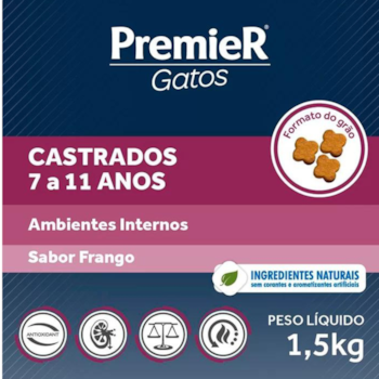 Ração PremieR Ambientes Internos Gatos Castrados 7 a 11 anos Frango 1,5 kg