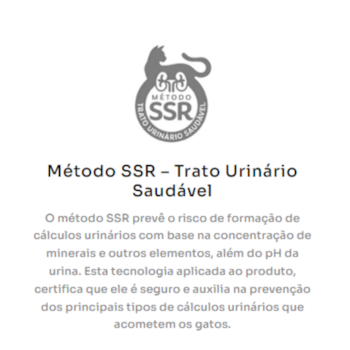 - Tecnologia SSR que previne a formação de cálculos urinários, garantindo um trato urinário saudável.