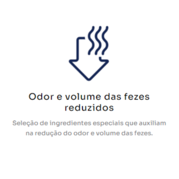 - Ingredientes especiais que reduzem o odor e o volume das fezes, melhorando a higiene do ambiente.