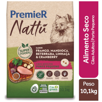 Ração PremieR Nattu Cães Adultos Raças Pequenas Frango, Mandioca e Linhaça 10,1kg