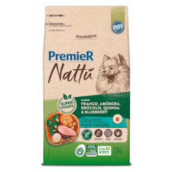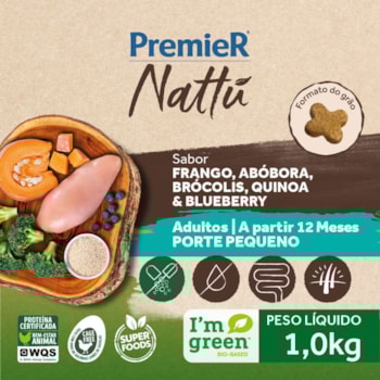 Ração PremieR Nattu Cães Adultos Raças Pequenas Sabor Frango, Abóbora e Brócolis 1,0kg