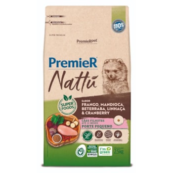 Ração Premier Nattu Cães Filhotes de Raças Pequenas Sabor Frango, Mandioca e Beterraba 2,5kg