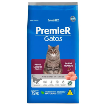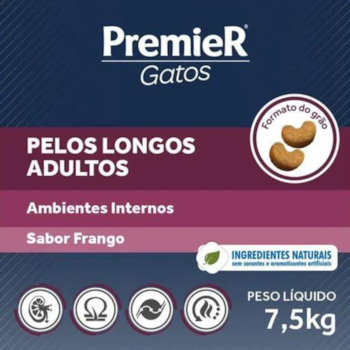 Ração PremieR Ambientes Internos Gatos Pelos Longos Adultos Frango 7,5kg
