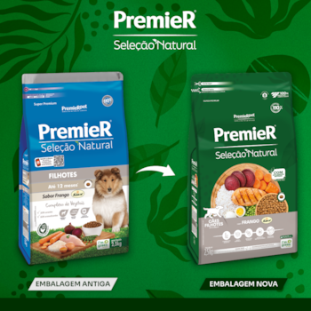 A Ração PremieR Seleção Natural cachorros filhotes raças sabor frango é um alimento Super Premium desenvolvido para cachorros, garantindo melhor saciedade e a dose certa de nutrientes para seu cachorro, com a formulação de 9 vegetais e formula com ingredientes selecionados.