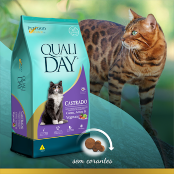 Gatos castrados têm uma tendência maior à obesidade, e a Ração Qualiday Cat reconhece essa preocupação. A Qualiday Cat é um alimento completo, é formulado para auxiliar na prevenção da obesidade, fornecendo a quantidade de calorias ideal para gatos castrados, para manterem um peso saudável.