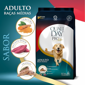 Ração Qualiday ProLife Sabor Frango, Batata-Doce e Cúrcuma 13kg Para Cães Adultos de Raças Médias