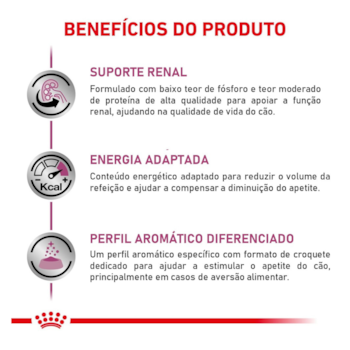 - Suporte à função renal: baixos níveis de fósforo e proteínas de alta qualidade ajudam a reduzir a sobrecarga dos rins em cães com insuficiência renal.