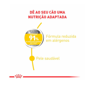 Alimento completo seco para cães adultos e maduros de porte pequeno (peso até 10 kg) com tendência a irritações de pele e coceira - A partir de 10 meses de idade. Formulado nutricionalmente com ácidos graxos ômega 3 & 6, incluindo GLA, EPA e DHA que ajudam a nutrir a pele sensível. Formulado para apoiar o cuidado da pele sensível do seu cão e manter a pelagem abundante e saudável. 91% dos tutores estão satisfeitos após 2 meses*. *Estudo interno Royal Canin. Auxilia a reduzir a formação de tártaro graças a agentes quelantes de cálcio.