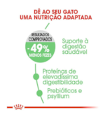 A Ração Royal Canin Digestive Care é desenvolvida especialmente para gatos adultos que apresentam sensibilidade digestiva, garantindo um cuidado completo e balanceado para manter a saúde intestinal e promover uma digestão ideal. Com uma fórmula de alta qualidade, este alimento contém nutrientes adaptados e um formato de croquete exclusivo que facilita a mastigação e a digestão, oferecendo uma experiência alimentar agradável e funcional para o seu gato. A Ração é formulada com uma combinação exclusiva de prebióticos e fibras naturais, como as cascas de sementes de psyllium, que auxiliam na manutenção do equilíbrio da flora intestinal e na regulação do trânsito intestinal.