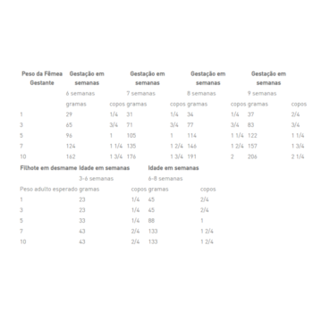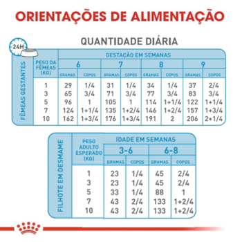 - Indicação: Indicado para cães fêmeas (peso até 10kg) durante a gestação e lactação e filhotes em desmame até 2 meses.