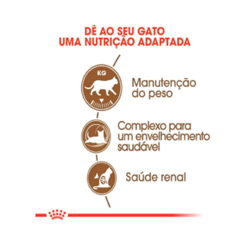 A Ração Royal Canin Sterilised 12+ foi desenvolvida especialmente para gatos idosos castrados com idade a partir de 12 anos. Com uma formulação cuidadosa, ela atende às necessidades nutricionais dos felinos em fase avançada da vida, promovendo saúde e qualidade de vida. Além de ser um alimento completo e super premium, essa ração auxilia em aspectos essenciais para o conforto do pet, como a manutenção do peso, suporte às funções cognitivas e proteção contra o estresse oxidativo. A Royal Canin Sterilised 12+ é um cuidado completo com o bem-estar do seu gatinho. Além de oferecer uma nutrição balanceada, ela contribui para uma vida ativa e saudável, mesmo na idade avançada. Ao fornecer nutrientes específicos, a ração apoia a vitalidade, promove o equilíbrio do peso e protege contra desgastes naturais da idade, permitindo que o seu gato viva com mais conforto e saúde.