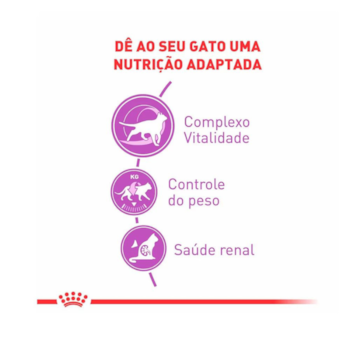 - Formulação que apoia o envelhecimento saudável e contribui para a qualidade de vida do gato;